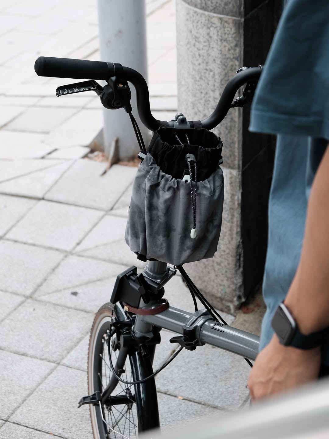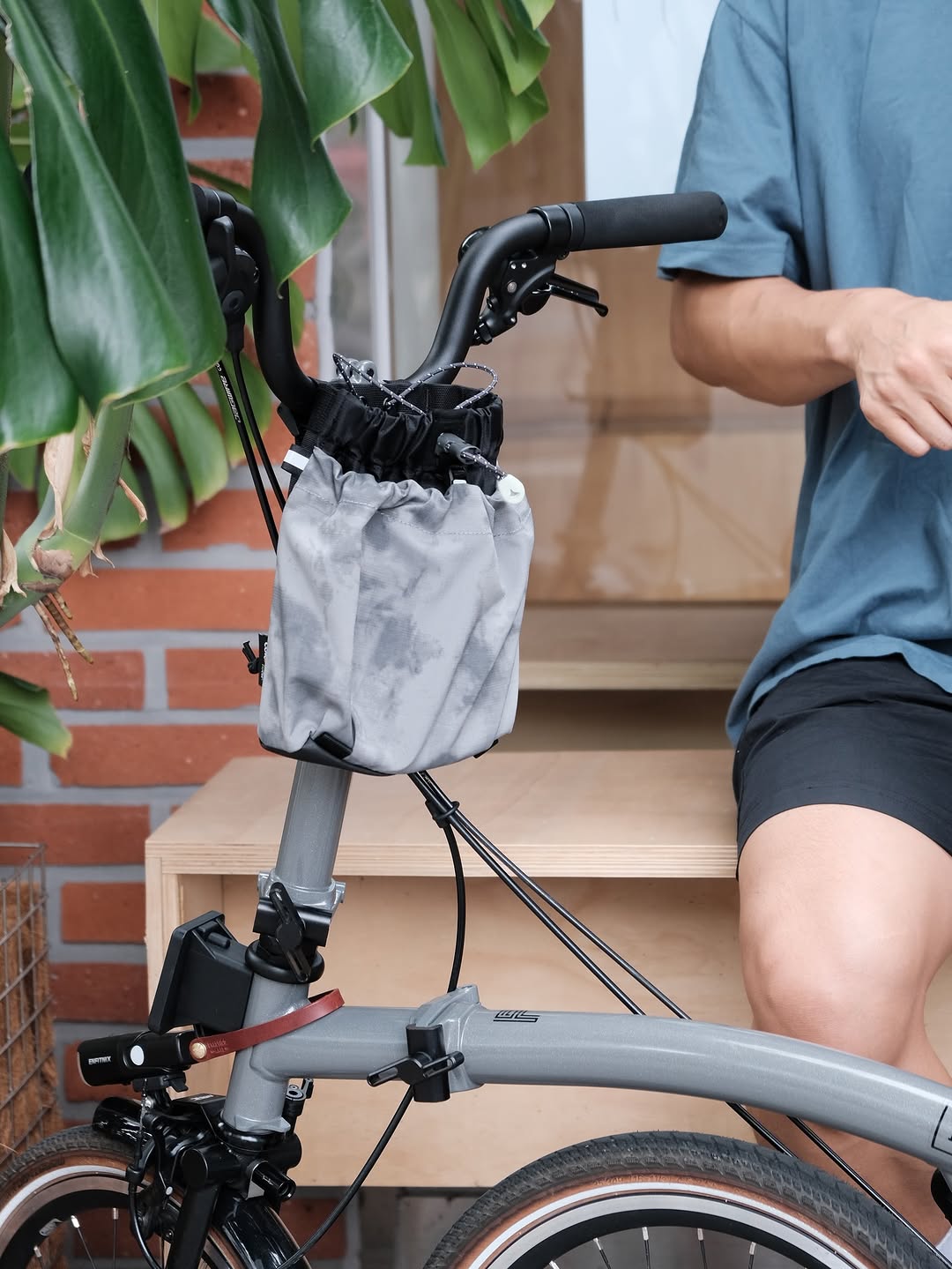 When folding the Brompton and lowering the saddle all the way, the bag keeps its shape, keeping your belongings safe.
